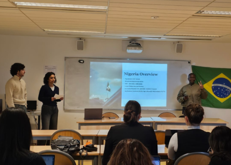 Over the course of five sessions, the second-year M2i master’s students prepared for a role-playing exercise based on several climate-modeling tools. Their objective was to simulate a Conference of the Parties (COP) and negotiate reductions in greenhouse gas emissions in a world currently on track for more than 2°C of warming compared to pre-industrial levels.